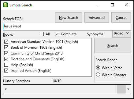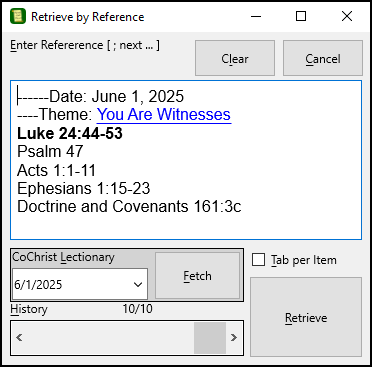 ScriptureViewer can also play your .mp3 audio and .mp4 videos (you must acquire such on your own, ScriptureViewer doesn't record such) that are in linked directories and whose name includes the hymn number. Such recordings are presented as a link with the corresponding hymns. For video capture, the author has used both the pair YT-DLP with FFmpeg (both freeware) and Easy Youtube Video Downloader, a browser add-on available for several popular browsers. Other tools are also available. Both capture options have been used in Windows, MAC and Linux to capture .mp4 files from the A/V links offered. While the Video Downloader full version isn't freeware, it is available for a nomimal fee. As youtube regularly updates the streaming rules, both options need regular updates and occasionally neither is able to create an .mp4 file until the next update.